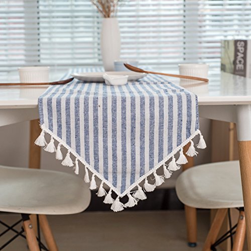 - DELICATE WORKMANSHIP: Features modern striped pattern in extremely soft cotton linen fabric with beautiful tassel edge, this ColorBird elegant table runner will add a touch of charming of your whole decor